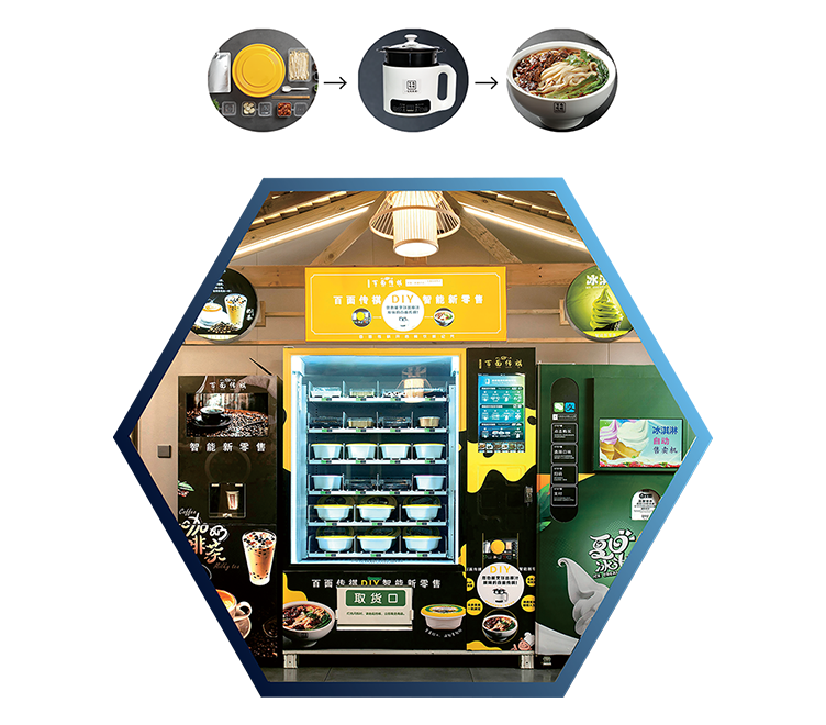 一款新时代的智能无人售餐模式,我们将各式各样的美食放进智能无人售餐机中,让顾客足不出户即可享受到我们门店原汁原味的美食。做到生产标准化,流程规范化,种类多样化,实现一机多餐,一店顶十店的销售模式!